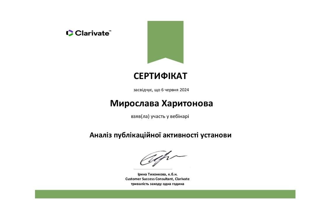 2 травня 2024 року провідні фахівці бібліотеки Куторга А.В., Харитонова М.М., Потапенко Г.В. відвідали вебінар «Оновлення у авторському профілю у Web of Science». Доповідачка: Ірина Тихонкова, к.б.н., старший дослідник, Customer Success Specialist Clarivate на вебінарі розповіла як створювати, наповнювати, додавати та як підтвердити позицію автора, хто може редагувати і бачити здобутки науковців.