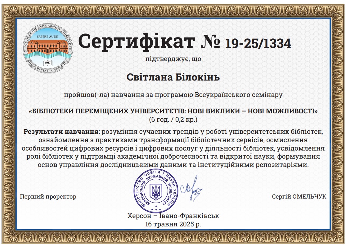Бібліотекарі пройшли навчання за програмою Всеукраїнського семінару «Бібліотеки переміщених університетів: нові виклики – нові можливості»