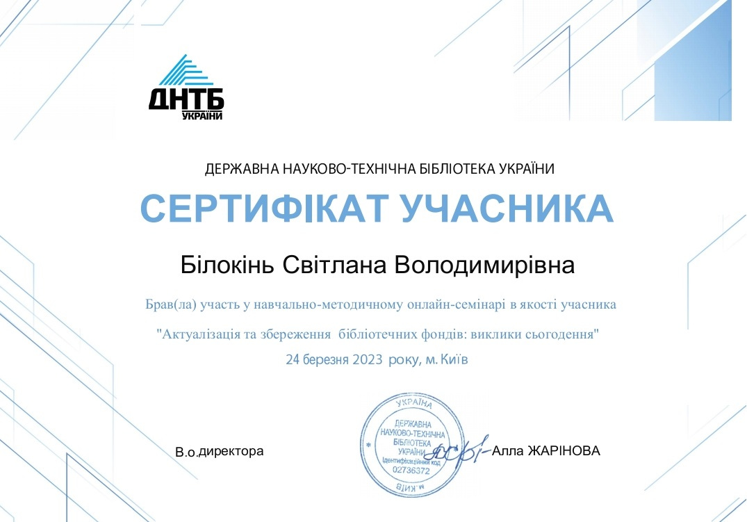 У сучасному інформаційному суспільстві роль бібліотекарів значно зросла, перетворюючи їх на важливих провідників у світі знань та інформації. Бібліотекарі активно беруть участь у різних заходах, включаючи вебінари та тренінги, де вони здобувають нові знання та отримують сертифікати. Професійний розвиток у бібліотечній сфері стає ключовим елементом кар’єрного зростання, адже бібліотечна освіта забезпечує необхідні навички та компетенції для ефективного виконання своїх обов’язків. Участь у таких заходах допомагає бібліотекарям залишатися в курсі сучасних тенденцій, впроваджувати інноваційні підходи та підвищувати рівень інформаційної грамотності користувачів.