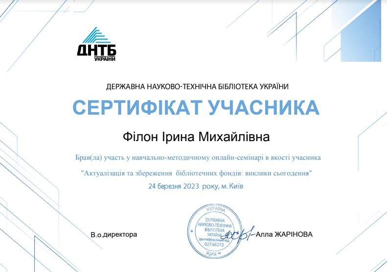 У сучасному інформаційному суспільстві роль бібліотекарів значно зросла, перетворюючи їх на важливих провідників у світі знань та інформації. Бібліотекарі активно беруть участь у різних заходах, включаючи вебінари та тренінги, де вони здобувають нові знання та отримують сертифікати. Професійний розвиток у бібліотечній сфері стає ключовим елементом кар’єрного зростання, адже бібліотечна освіта забезпечує необхідні навички та компетенції для ефективного виконання своїх обов’язків. Участь у таких заходах допомагає бібліотекарям залишатися в курсі сучасних тенденцій, впроваджувати інноваційні підходи та підвищувати рівень інформаційної грамотності користувачів.