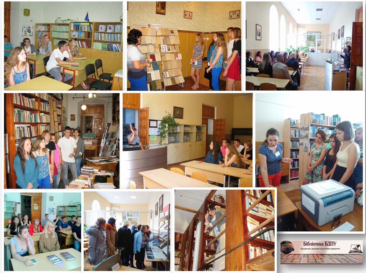Пройшла перша екскурсія в новому навчальному році для студентів І курсу Факультету дошкільної, спеціальної та соціальної освіти спеціальності «Соціальна робота». Першокурсники відвідали абонементи № 1, № 3, довідково-інформаційний відділ, читальний зал, фонд рідкісної і цінної книги, а також медіа-центр та дізналися де потрібно брати друковані або електронні книги. Також їхній увазі були представлені сайт бібліотеки та репозитарій БДПУ.