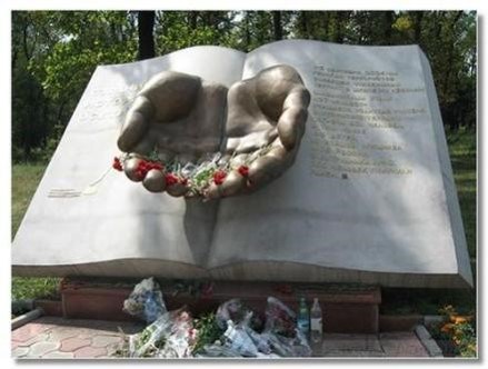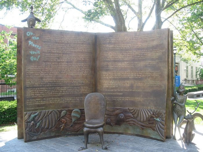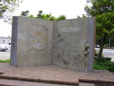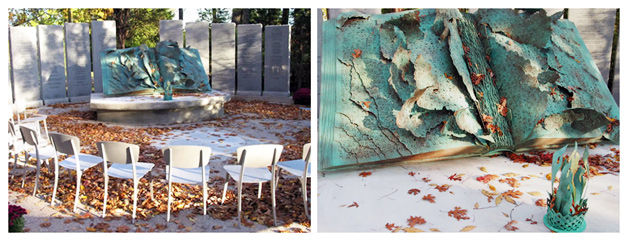 Існує безліч пам’ятників у вигляді розкритої книги.