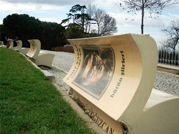 Кожна лавка присвячена певному турецькому поетові. Лавки зроблені у вигляді відкритих книг з віршами поетів, бажаючий може приєднатися до читання.