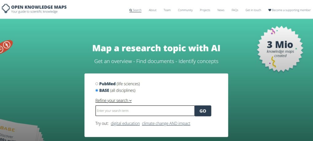 Пошукова система, яка допомагає дослідникам, студентам та викладачам ефективно знаходити наукову інформацію. Платформа організовує результати пошуку у вигляді мап знань, що дозволяють зручно оглядати ключові теми, підходи та джерела з будь-якої заданої теми.