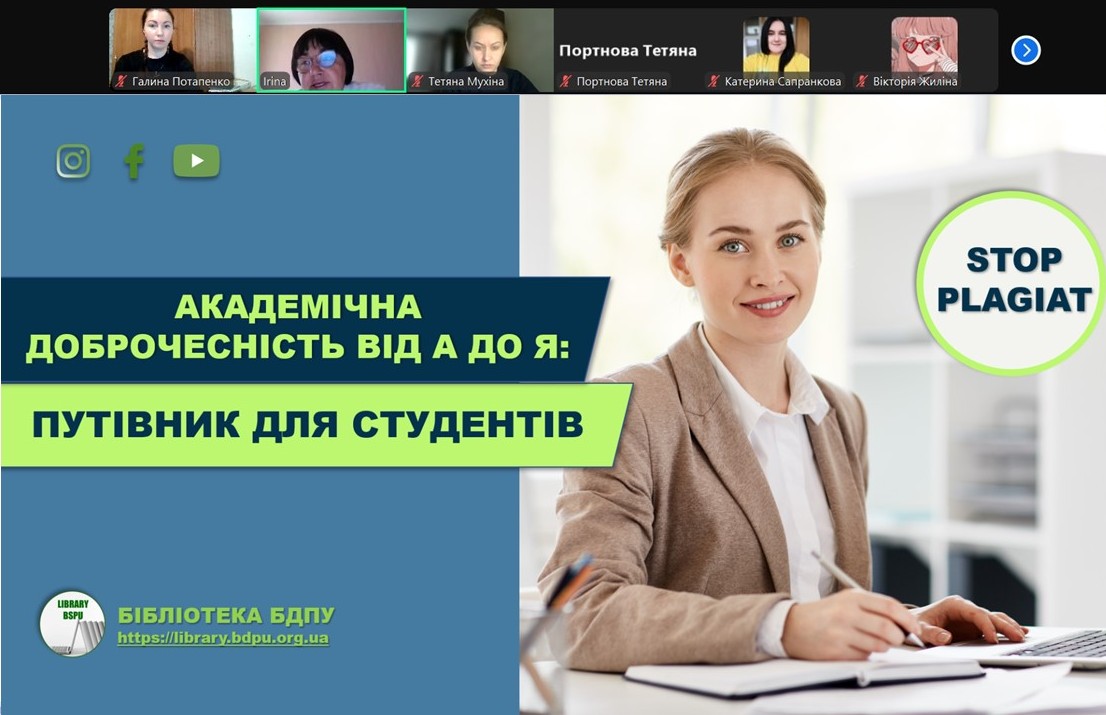 Бібліотека БДПУ продовжує сприяти поширенню знань про академічну доброчесність серед студентів та викладачів, адже дотримання етичних стандартів є одним із головних принципів університетської спільноти. Ми вдячні всім, хто приєднується до наших заходів, та запрошуємо всіх бажаючих до наступних інформаційних зустрічей.