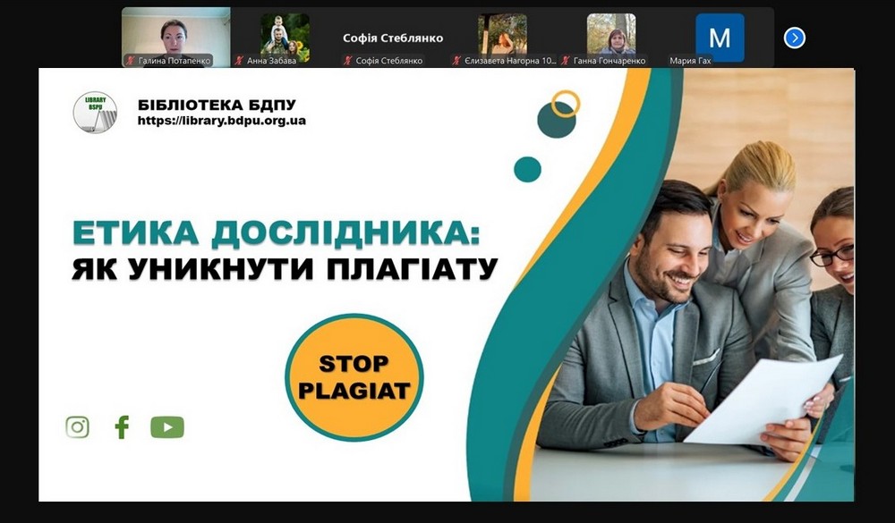 Бібліотека БДПУ провела освітній захід для студентів ФДССО, присвячений академічній доброчесності. У рамках зустрічі розглядали ключові аспекти дотримання етичних стандартів у навчанні, правильне оформлення цитувань і користування відкритими базами наукової літератури. Особливу увагу приділили сучасним технологіям, зокрема штучному інтелекту.