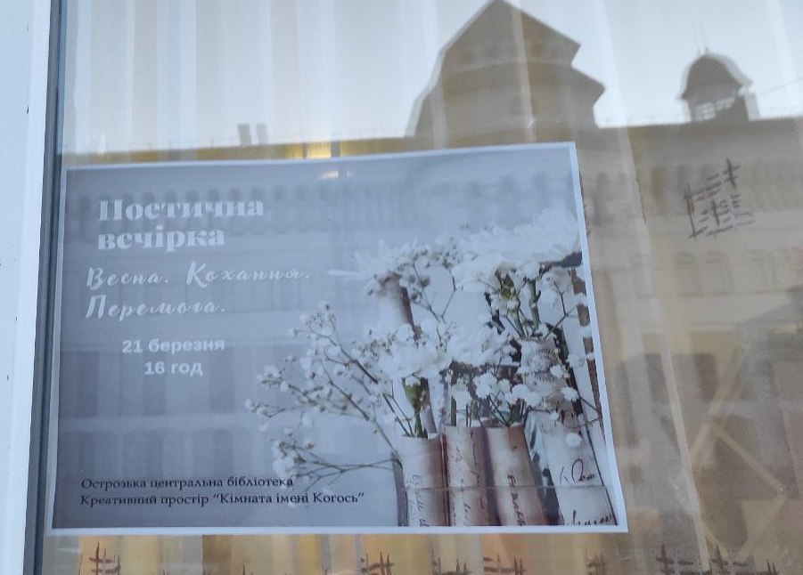 21 березня бібліотекарки Бердянського державного педагогічного університету Наталя Романова та Галина Потапенко відвідали захід в Креативному просторі «Кімната імені Когось», острозької центральної бібліотеки, присвячений дню поезії. В креативному просторі відбулася поетична вечірка «Весна. Кохання. Перемога», яка зібрала місцевих поеток та любителів віршованого слова!