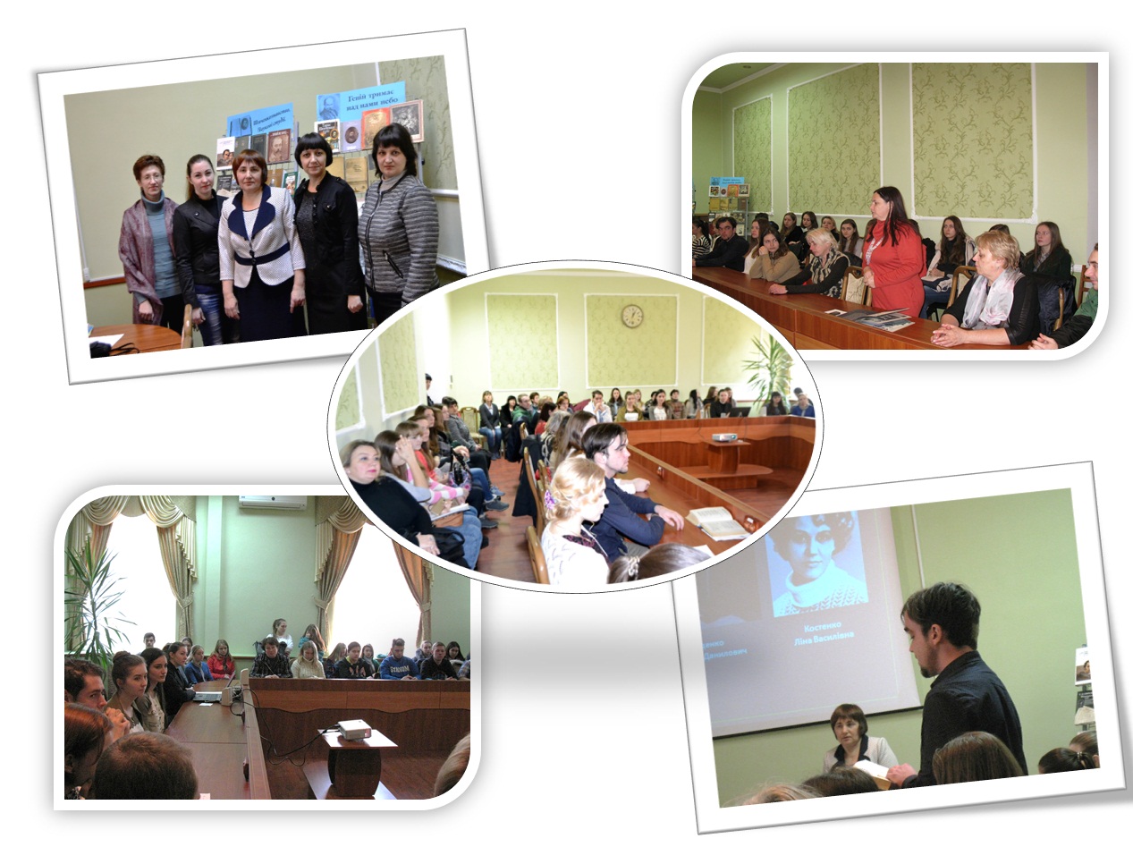 Засідання проводила Філон Ірина, завідуюча відділом обслуговування. Прекрасний виступ д.філ.н., проф. Новик Ольги Петрівни ознайомив слухачів з новими розвідками з шевченкіанства, а декламування студентами віршів Василя Стуса, Ліни Костенко, Миколи Руденка, присвячених Великому Кобзарю, не залишили нікого байдужими.