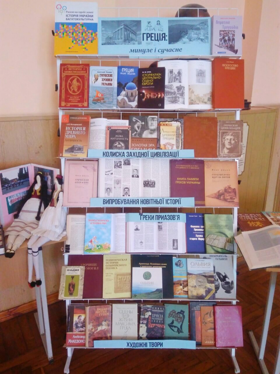 Колиска західної цивілізації, вічно юна і прекрасна Греція. Такою вона постала на книжкових виставках представлених бібліотекою БДПУ на заході, присвяченому 25-річчю з Дня заснування Бердянського міського грецького товариства «Еллада», що відбувся 5 квітня, в університетській актовій залі. Античність і друга світова війна, археологічні знахідки і художня література – інформаційний супровід заходу розкривав тему в різних аспектах.