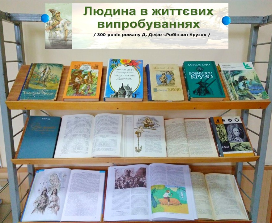 - Дефо Д. Життя та дивні пригоди морехода Робінзона Крузо / Д. Дефо ; пер. К. Чуковського. – К. : Молодь, 1950. – 199 с.