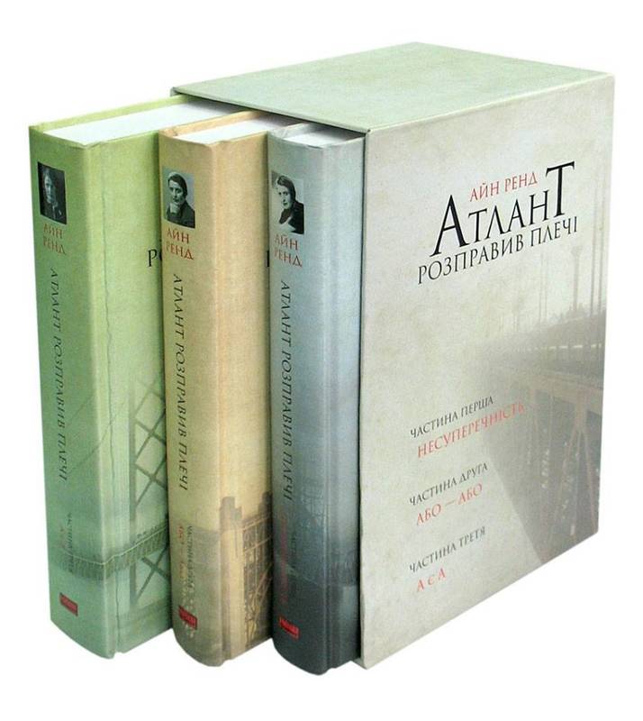 «Атлант розправив плечі» magnus opus Айн Ренд, який авторка писала впродовж 12 років, став її найгучнішим бестселером, одним із найвпливовіших художніх творів світової літератури. Згідно з опитуванням Бібліотеки Конгресу США, це друга після Біблії книга, яка змінила життя американських читачів. Три частини трилогії названі відповідно до основних законів логіки: «Несуперечність», «Або-або», «А є А».