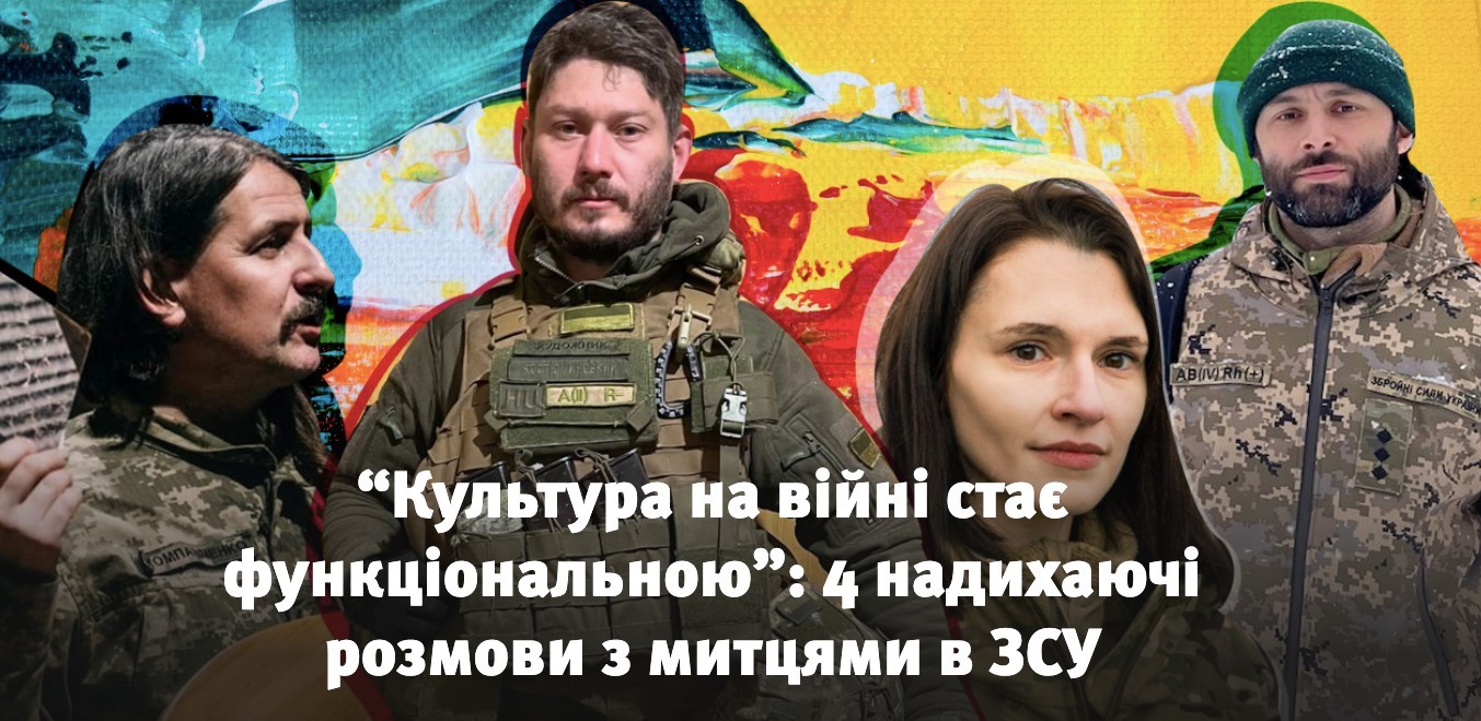 •розповідає про військовослужбовців і ветеранів/ок зі сфери культури та креативних індустрій, а також їхнє мистецтво часів війни;
