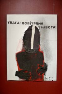 Ця воєнна серія – документування не так подій, як своєї реакції на трагедію, яку ми всі переживаємо: звірства в Бучі, заміновані береги рідної митцю Одеси, щоразу свіжі новини про злочини окупантів та життя в постійному напруженні, однією з причин якого є нескінченні повітряні тривоги.