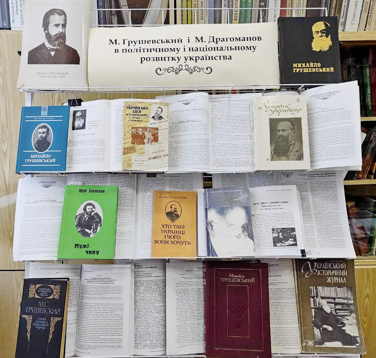 М. Грушевський і М. Драгоманов в політичному і національному розвитку українства М. Драгоманов (1841–1895) та М. Грушевський (1866–1934) – мислителі, політики, будівничі нової України; вчені світового рівня, творча спадщина яких вражає своїм тематичним діапазоном, енциклопедичністю, фундаментальністю. Бібліотека презентує виставку-діалог, виставку-диспут, виставку-синтез. 28.09.2021 |