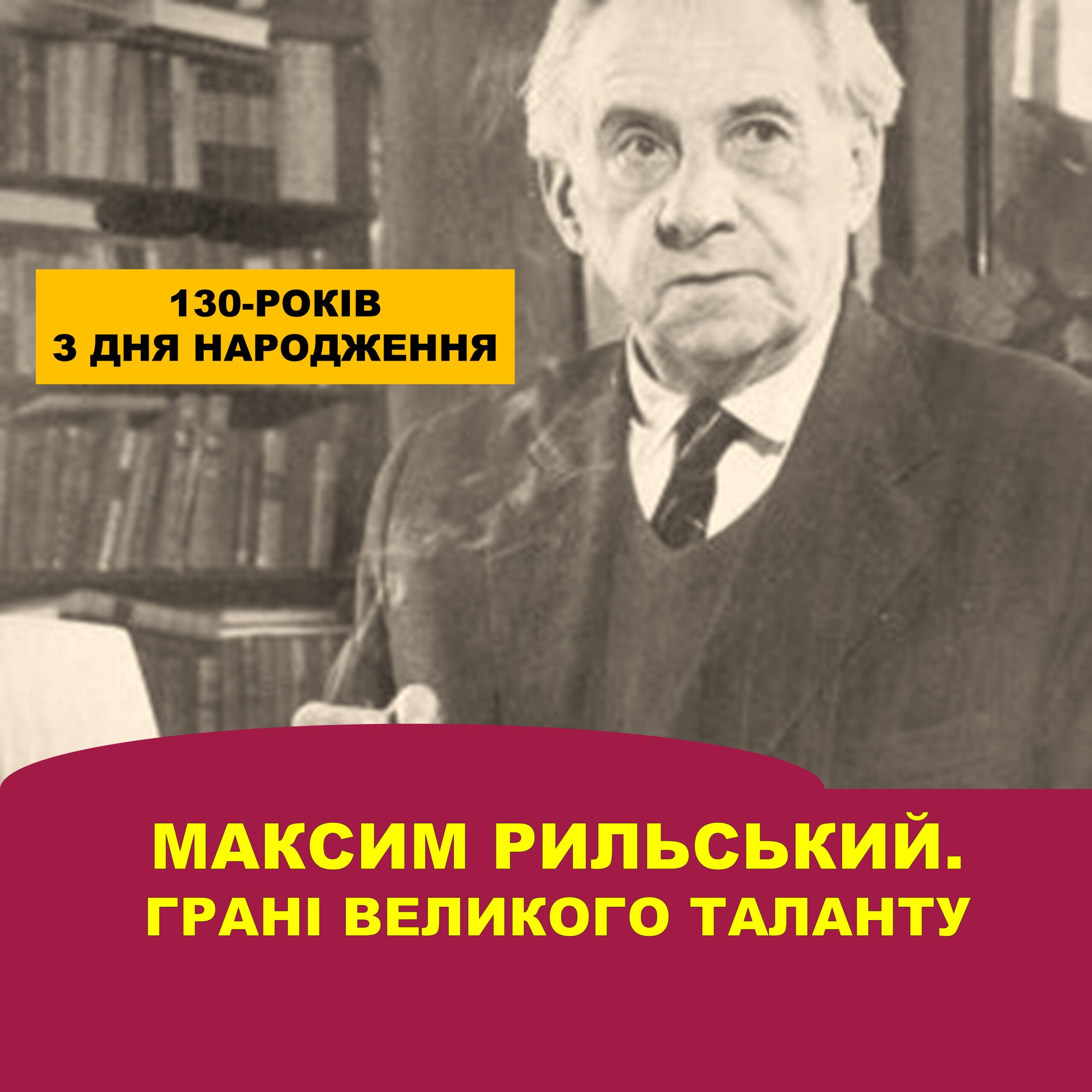 Максим Рильський. Грані великого таланту (до 130-річчя з Дня народження) 19 березня – 130 років з Дня народження М. Т. Рильського – великого поета, визначного перекладача, етнографа, мовознавця, одного з «п‘ятірного грона» неокласиків. Бібліотека підготувала віртуальну виставку, присвячену його життю та творчості. Дивитись «Віртуальні виставки» 18.03.2025 |