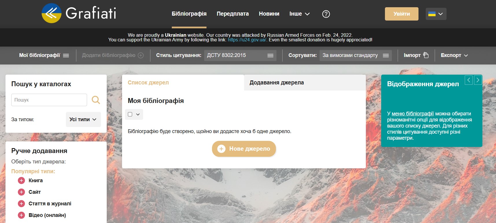 «Grafiati» – це сервіс автоматичного оформлення бібліографічних посилань і створення списків використаних джерел.