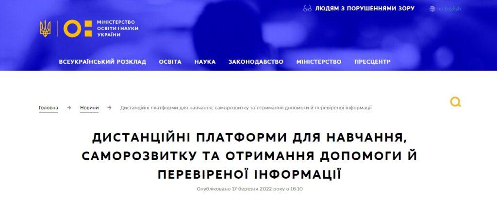МОН України пропонує перелік корисних ресурсів для дорослих та дітей щодо психологічної підтримки, навчання та інформування. Посилання: https://mon.gov.ua/ua/news/distancijni-platformi-dlya-navchannya-samorozvitku-ta-otrimannya-dopomogi-j-perevirenoyi-informaciyi