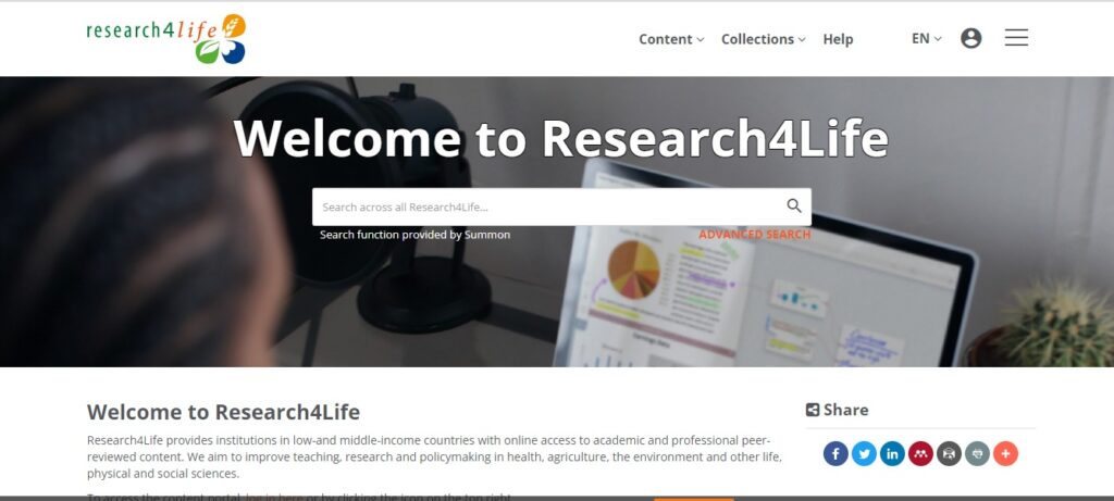 Research4Life – найбільша у світі платформа науково-технічної, природничої, медичної та суспільно-політичної літератури від провідних міжнародних видавців.
