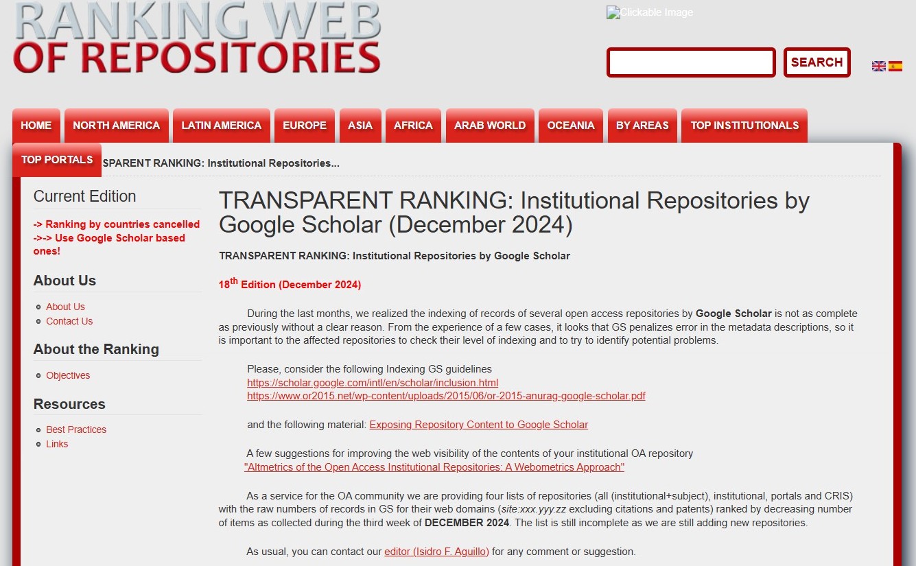 Прозорий рейтинг: Інституційні репозиторії від Google Scholar (грудень 2024 р.)