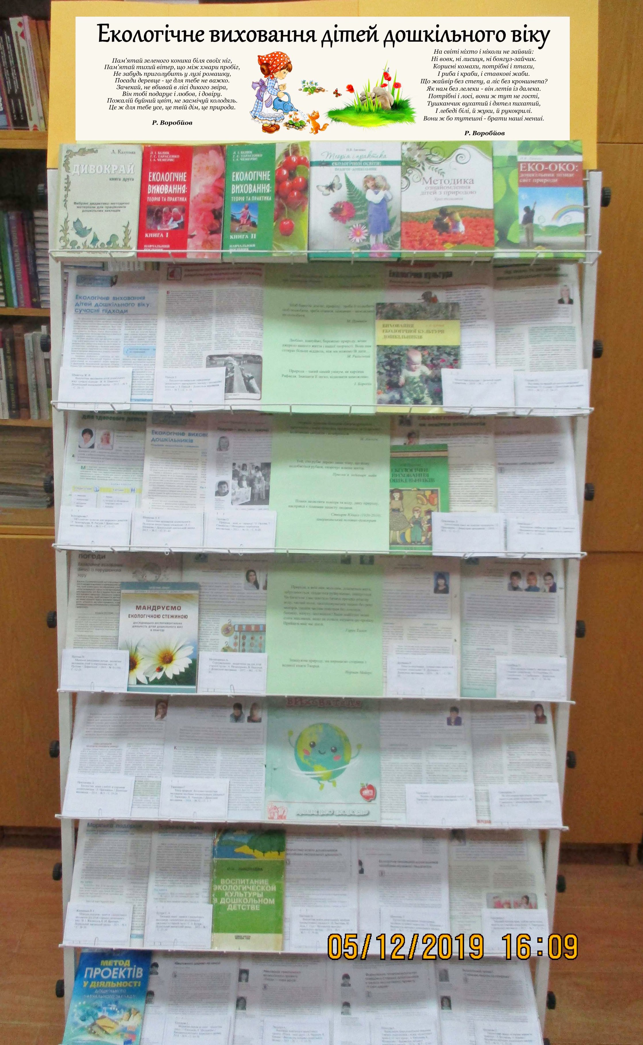 - Екологічна культура. Виховуємо майбутнє : тема номера // Дитячий садок. Управління. – 2019. – № 2. – 44 с.